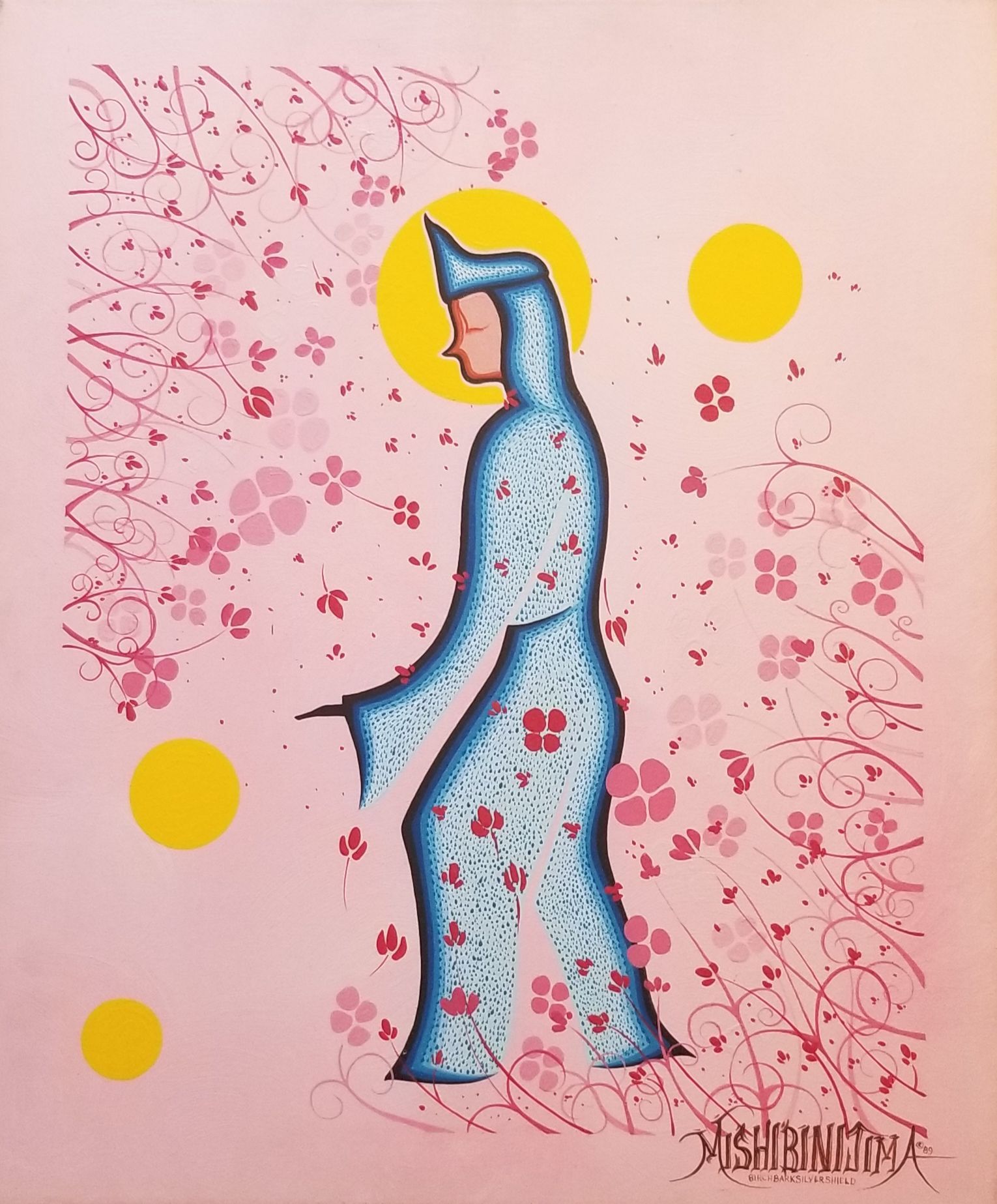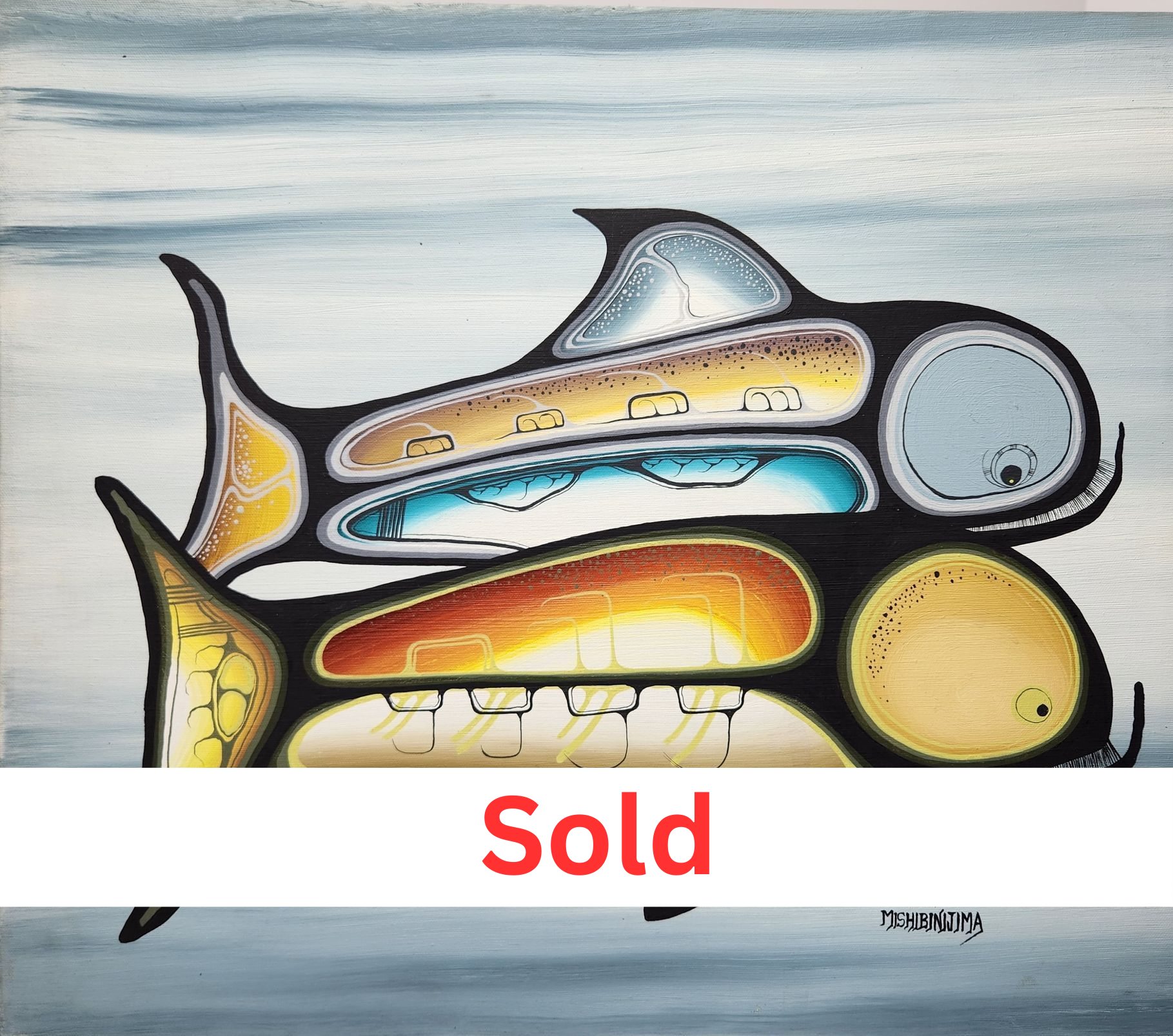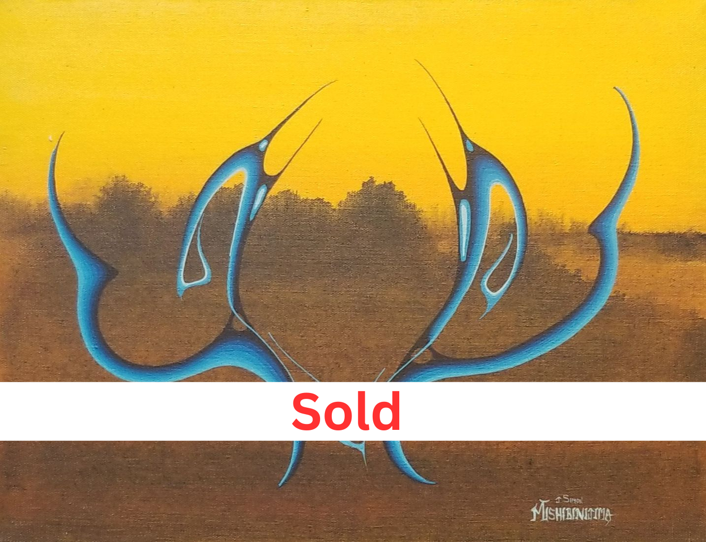 From the vibrant hues of the 1970s to the present day, Mishibinijima’s odyssey as an artist has been a pilgrimage to the sacred landscapes of Manitoulin Island, inspiring iconic series such as the transcendent "Mishmountain." His oeuvre resonates profoundly with audiences, offering solace and transcendence amidst life's myriad trials and uncertainties. Through his evocative paintings, Mishibinijima channels a profound philosophy of interconnectedness, urging humanity to cherish and safeguard the natural world for generations yet unborn.