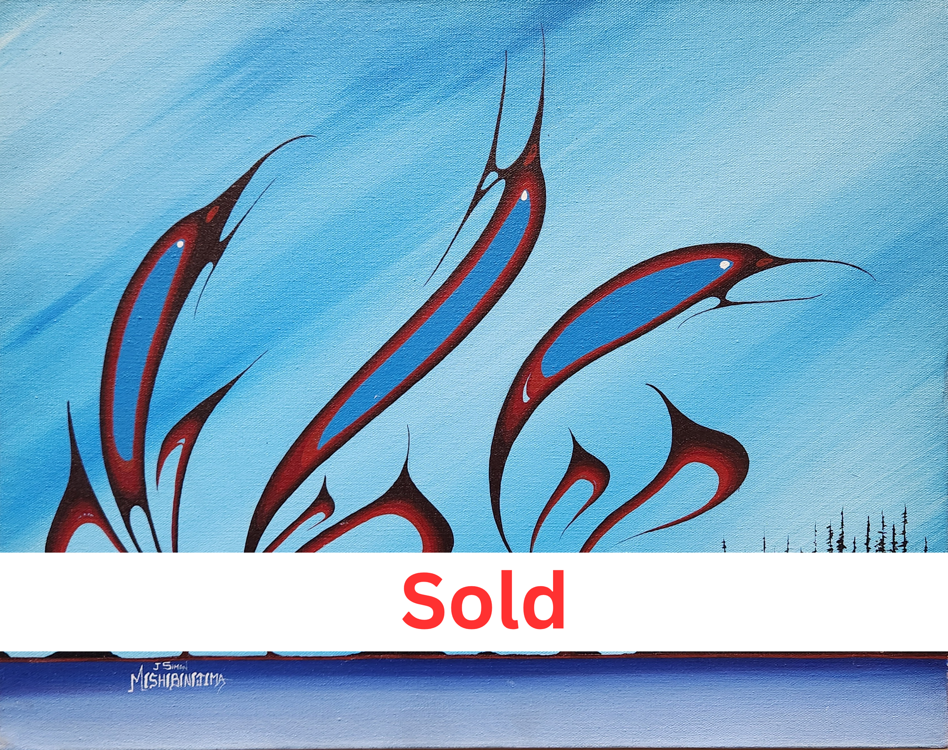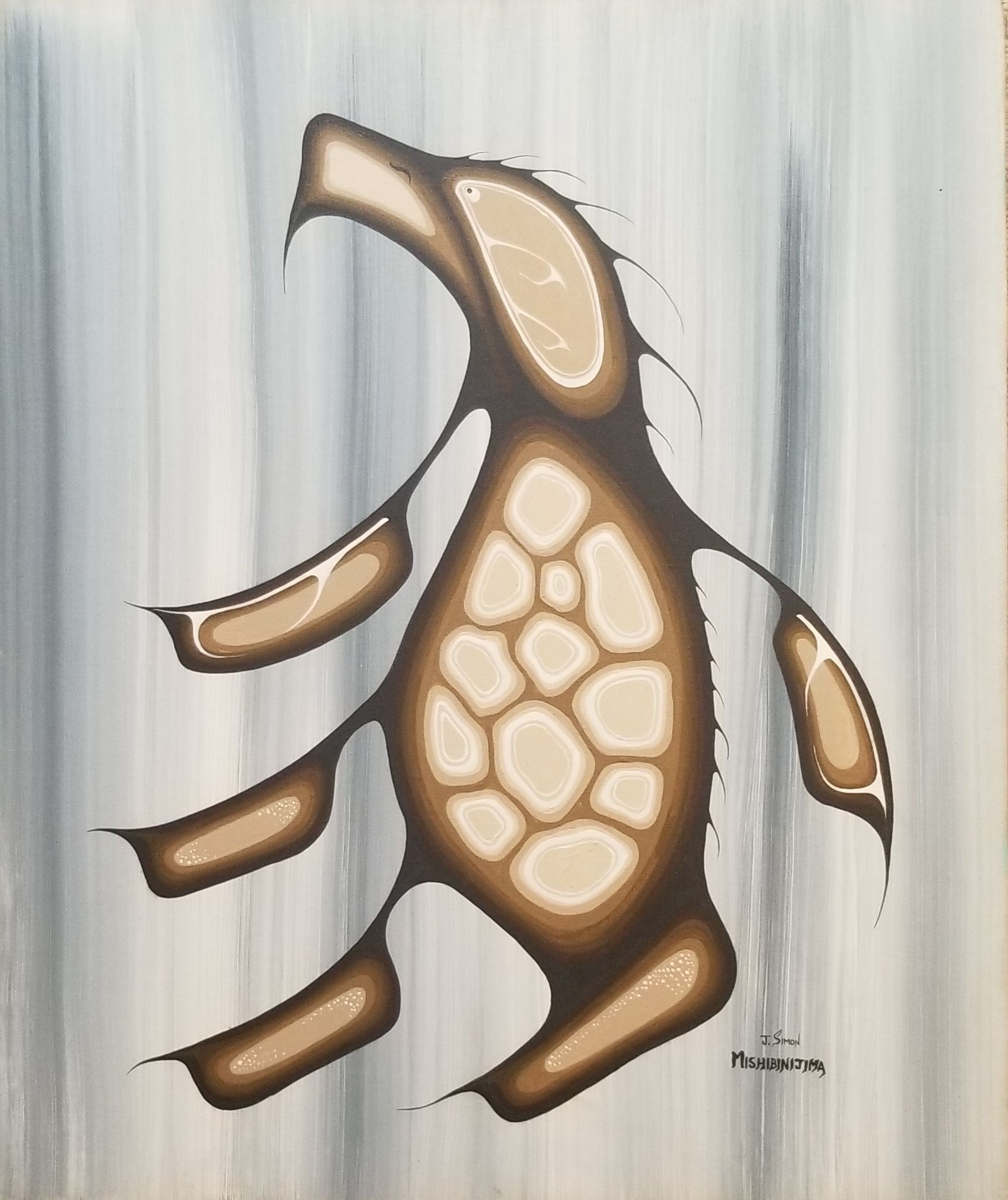 James Mishibinijima, né le 12 février 1954 au cœur de Wikwemikong, sur l’île Manitoulin, est reconnu comme l’un des artistes les plus éminents du Canada. Il tisse une œuvre fascinante, profondément enracinée dans les traditions spirituelles et culturelles du peuple ojibwé. Le parcours artistique de Mishibinijima s’étend sur plusieurs décennies, marqué par un engagement indéfectible à explorer divers styles et médiums artistiques, chaque coup de pinceau résonnant comme un écho des voix de ses ancêtres et des paysages sacrés qui ont façonné son identité.