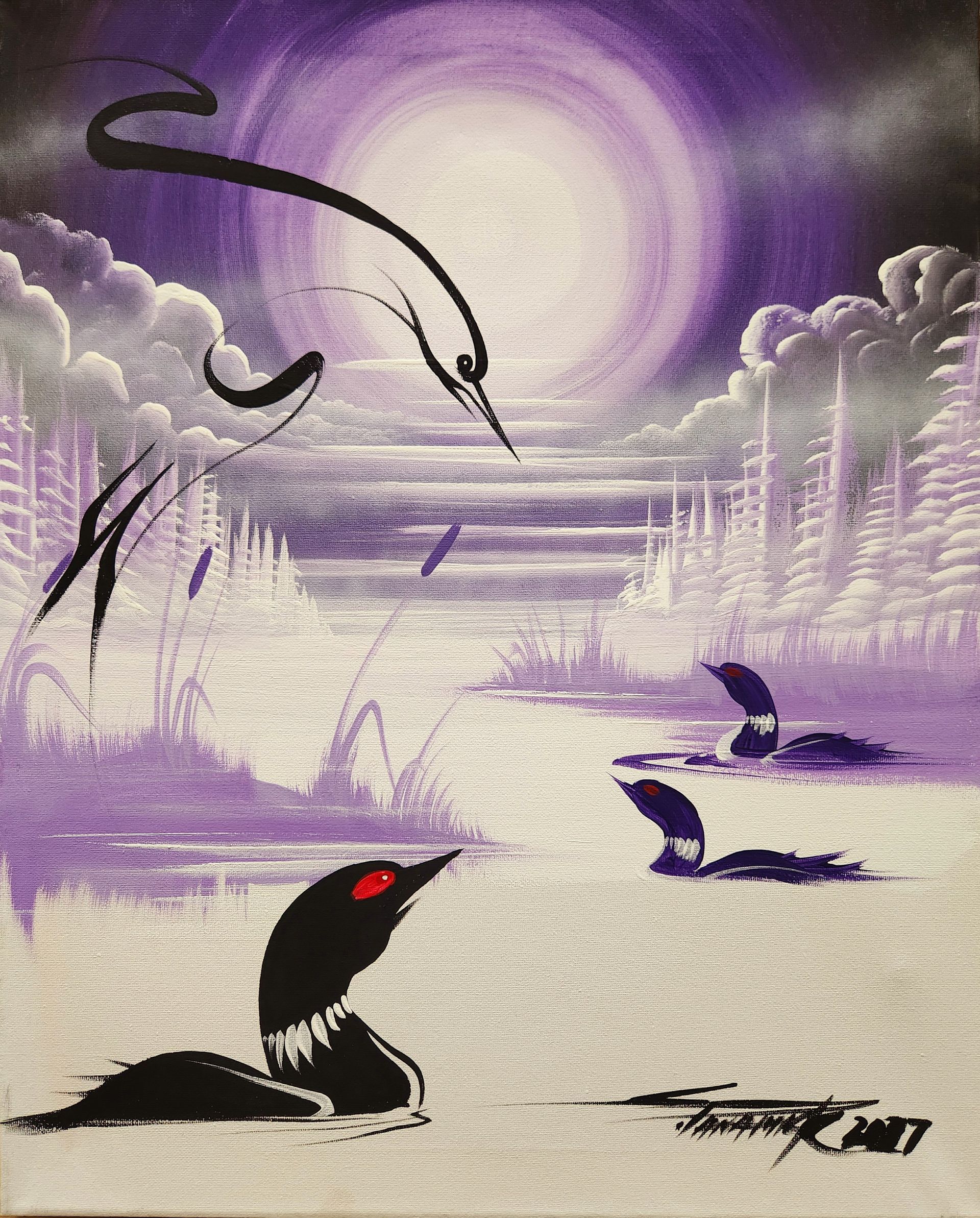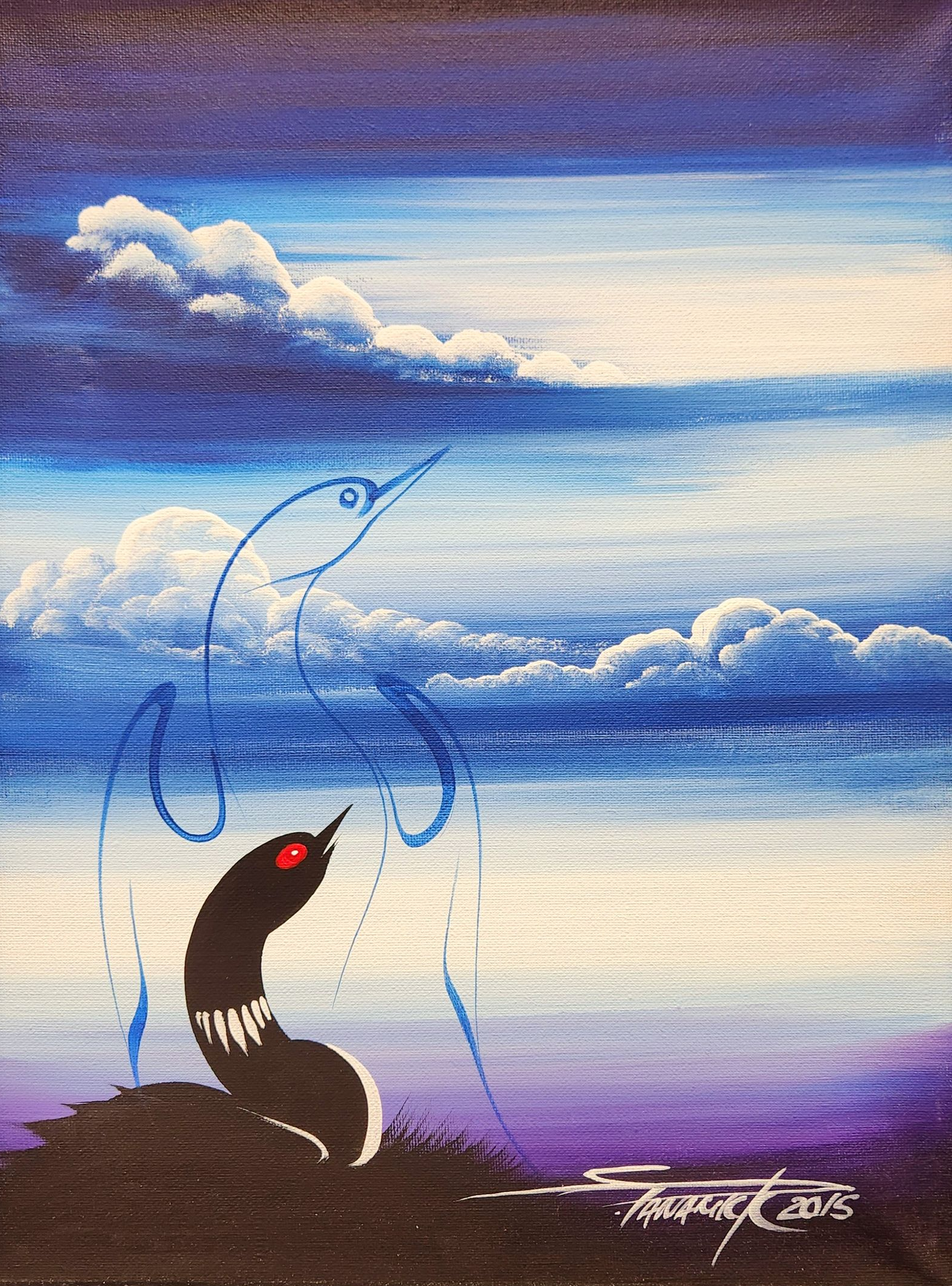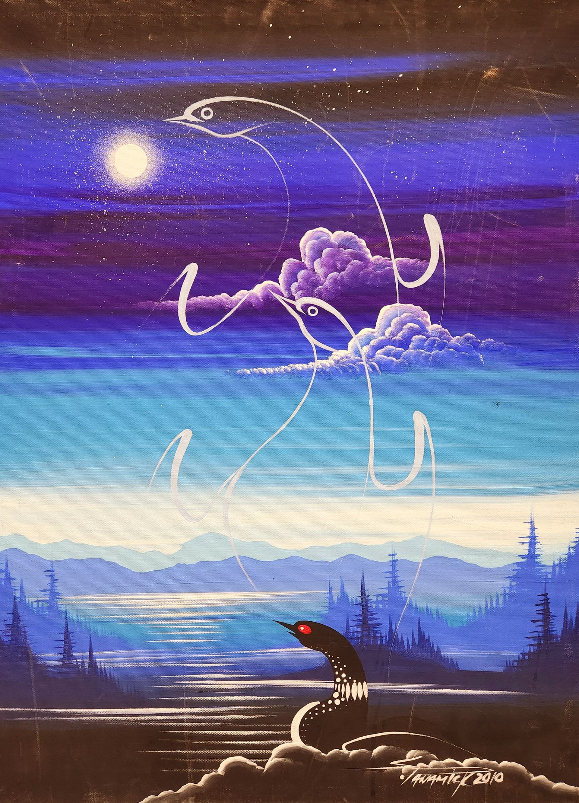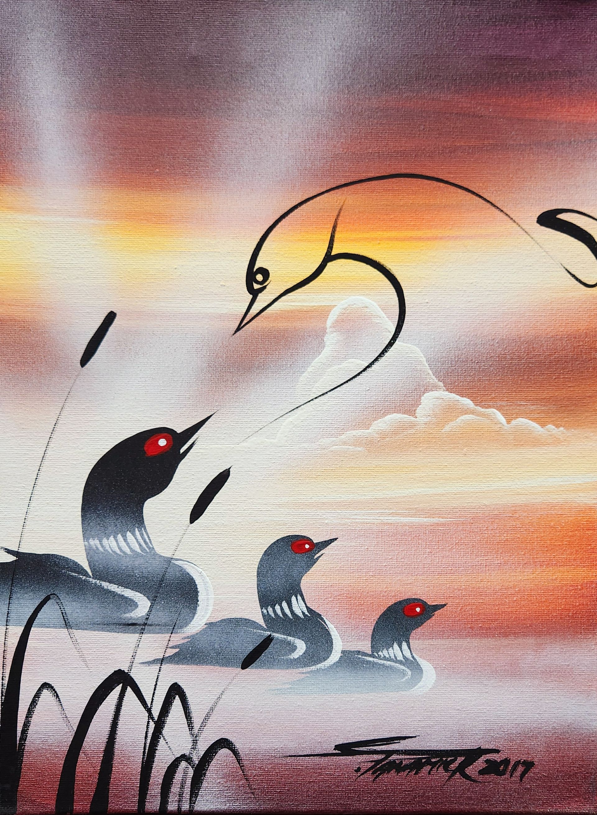 Stanley’s work is a testament to his profound connection with the land, animals, and spirit world. His paintings, which often blend wildlife, landscapes, and deeply spiritual narratives, invite viewers to embark on a journey of interpretation and introspection. Each brushstroke reflected his understanding of the world, offering a glimpse into the sacred and untold stories of the Anishinaabe people.